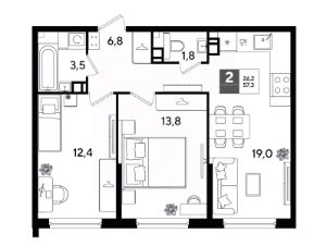 В продаже 2-комнатная квартира от застройщика! Мкр. "DOGMA PARK" г. Краснодар, Литер 24 Срок сдачи: 4 кв. 2027, общей площадью 57.3 кв.м., на 9 этаже.