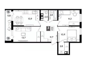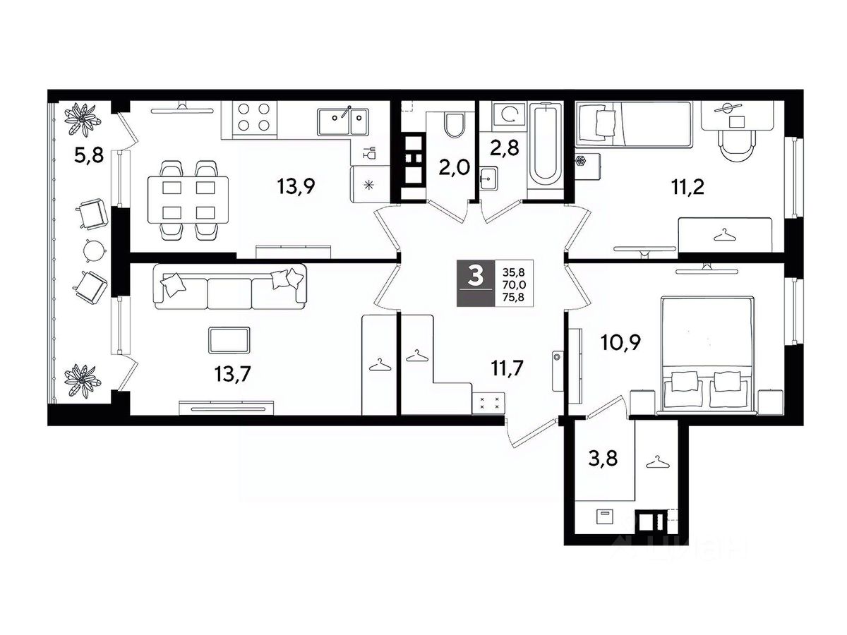В продаже 3-комнатная квартира от застройщика! Мкр. "DOGMA PARK" г. Краснодар, Литер 24 Срок сдачи: 4 кв. 2027, общей площадью 75.8 кв.м., на 9 этаже.