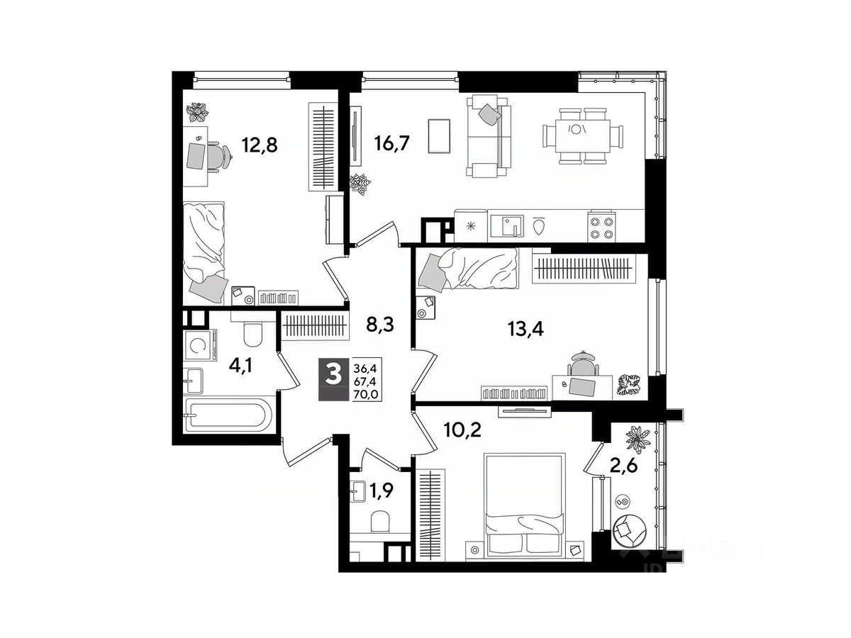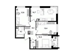 В продаже 3-комнатная квартира от застройщика! Мкр. "DOGMA PARK" г. Краснодар, Литер 24 Срок сдачи: 4 кв. 2027, общей площадью 70 кв.м., на 8 этаже.