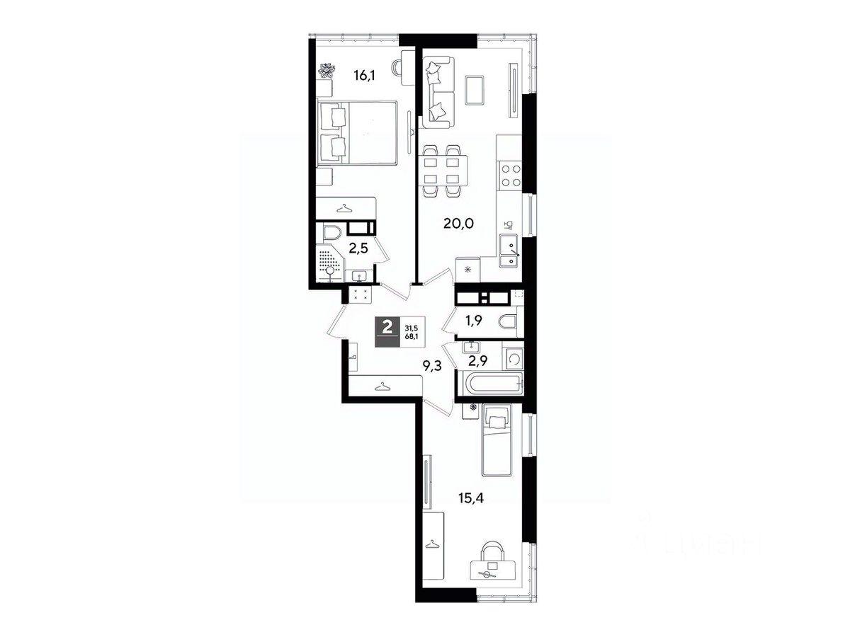 В продаже 2-комнатная квартира от застройщика! Мкр. "DOGMA PARK" г. Краснодар, Литер 24 Срок сдачи: 4 кв. 2027, общей площадью 68.1 кв.м., на 16 этаже.