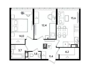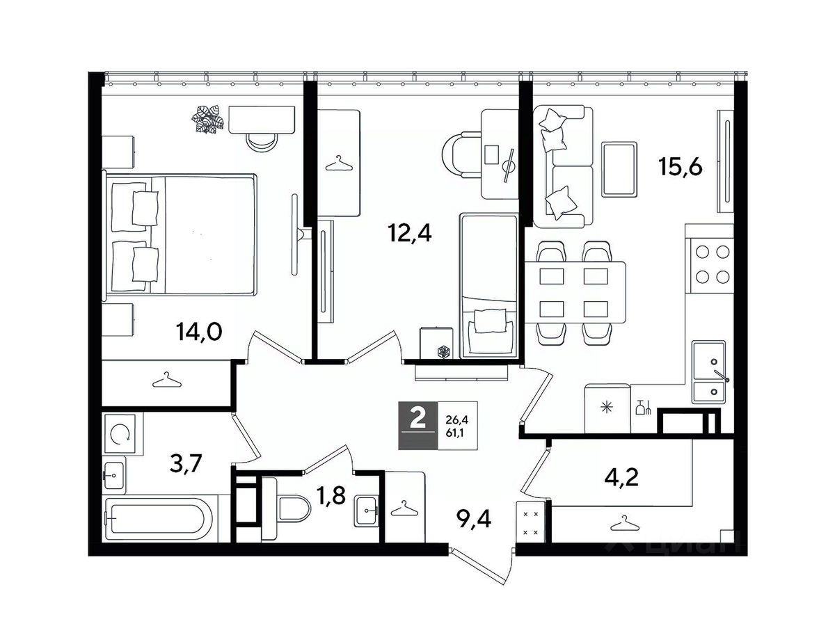 В продаже 2-комнатная квартира от застройщика! Мкр. "DOGMA PARK" г. Краснодар, Литер 24 Срок сдачи: 4 кв. 2027, общей площадью 61.1 кв.м., на 16 этаже.