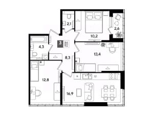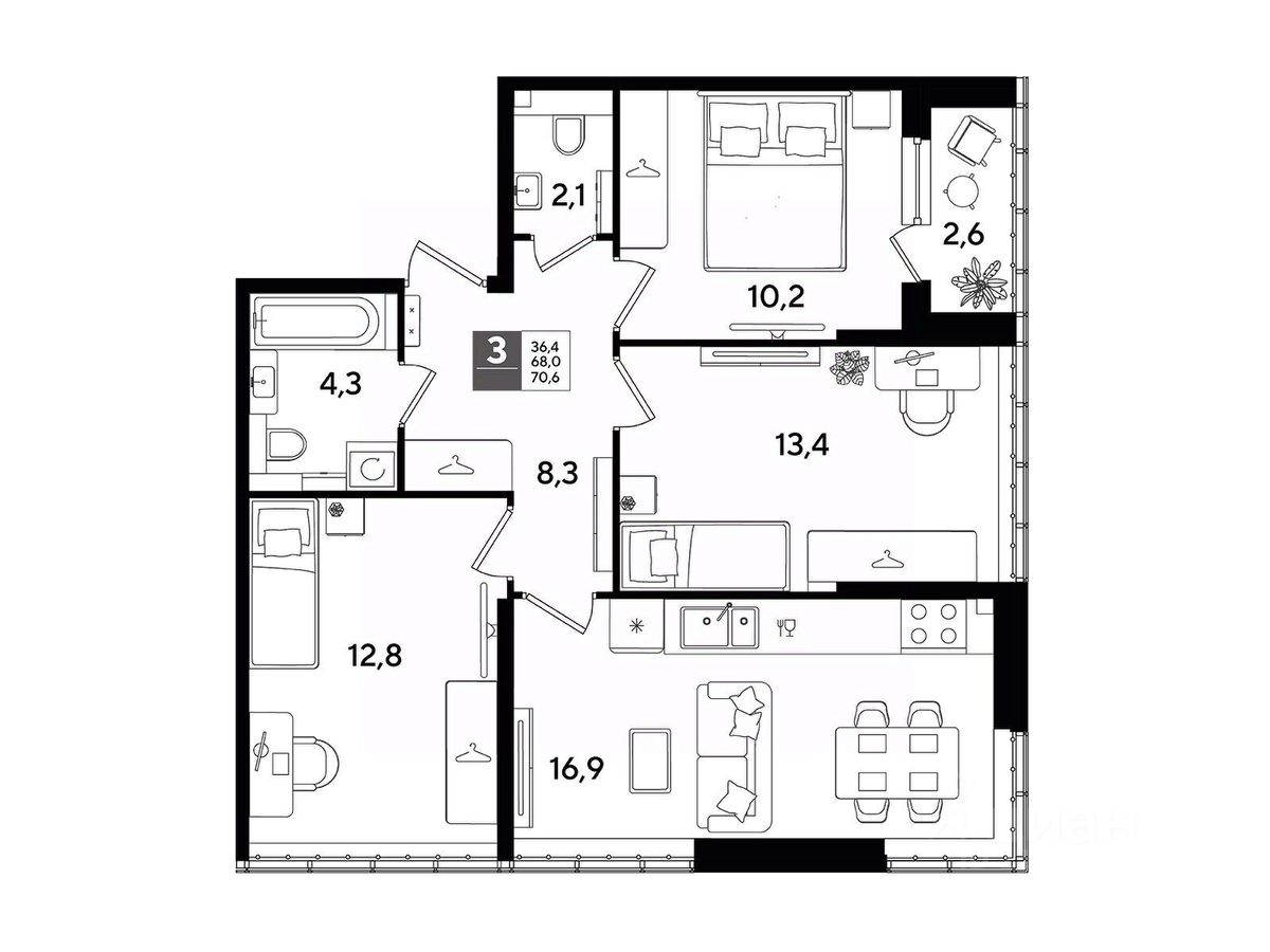 В продаже 3-комнатная квартира от застройщика! Мкр. "DOGMA PARK" г. Краснодар, Литер 22 Срок сдачи: 4 кв. 2027, общей площадью 70.6 кв.м., на 2 этаже.