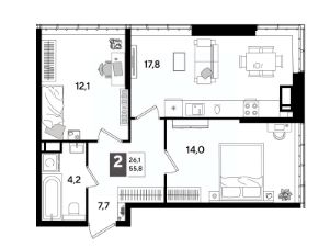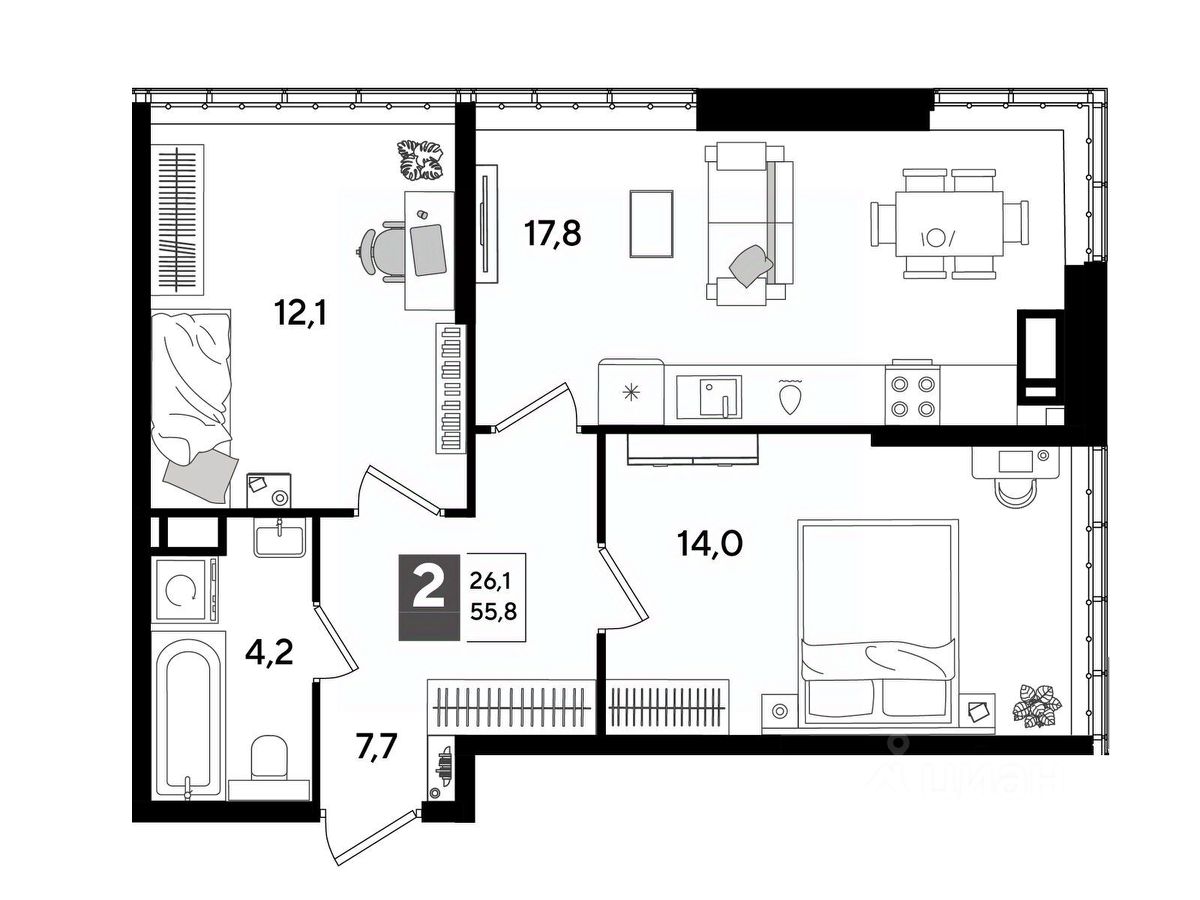 В продаже 2-комнатная квартира от застройщика! Мкр. "DOGMA PARK" г. Краснодар, Литер 22 Срок сдачи: 4 кв. 2027, общей площадью 55.8 кв.м., на 16 этаже.