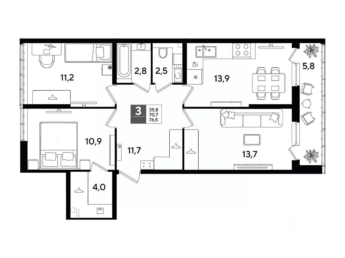 В продаже 3-комнатная квартира от застройщика! Мкр. "DOGMA PARK" г. Краснодар, Литер 22 Срок сдачи: 4 кв. 2027, общей площадью 76.5 кв.м., на 2 этаже.