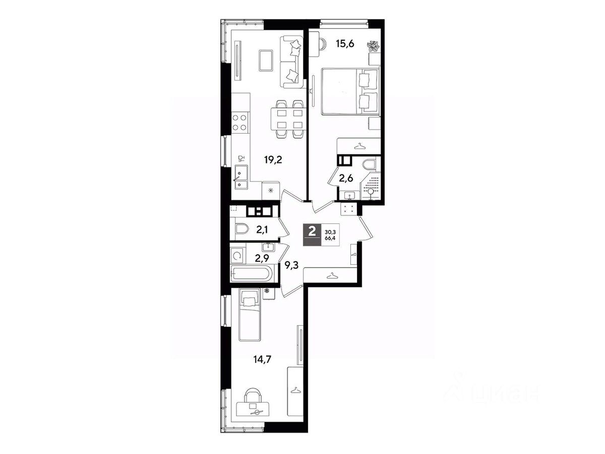 В продаже 2-комнатная квартира от застройщика! Мкр. "DOGMA PARK" г. Краснодар, Литер 22 Срок сдачи: 4 кв. 2027, общей площадью 66.4 кв.м., на 4 этаже.
