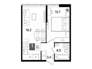 В продаже 1-комнатная квартира от застройщика! Мкр. "DOGMA PARK" г. Краснодар, Литер 22 Срок сдачи: 4 кв. 2027, общей площадью 38.3 кв.м., на 2 этаже.