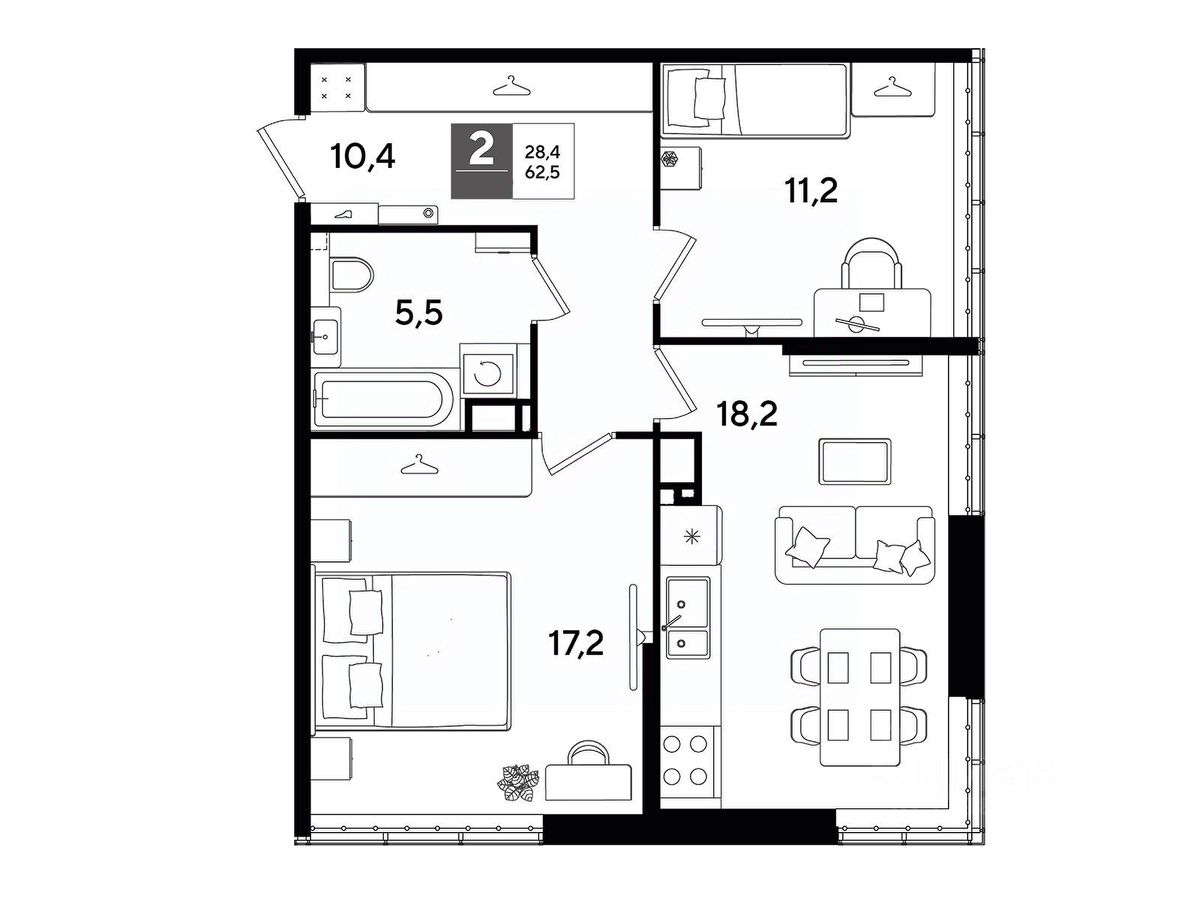 В продаже 2-комнатная квартира от застройщика! Мкр. "DOGMA PARK" г. Краснодар, Литер 22 Срок сдачи: 4 кв. 2027, общей площадью 62.5 кв.м., на 16 этаже.