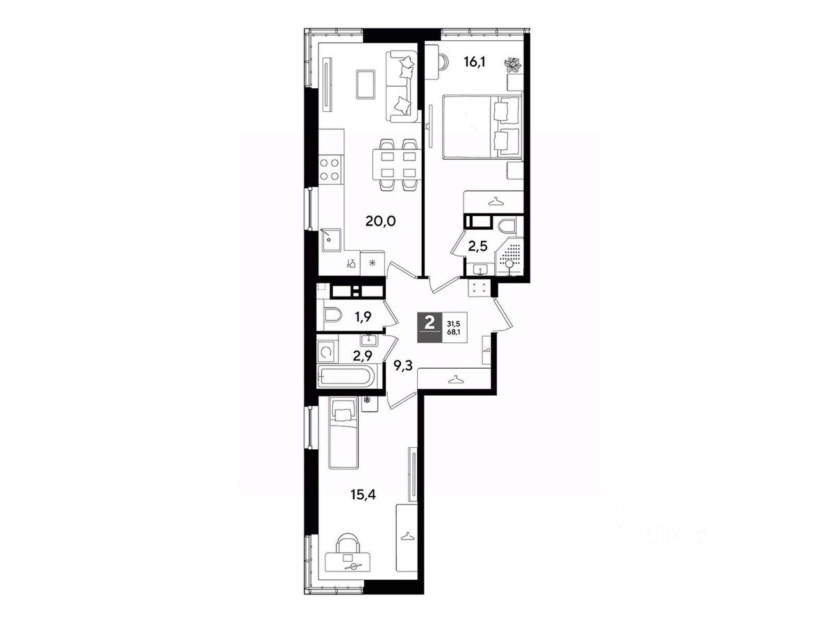 В продаже 2-комнатная квартира от застройщика! Мкр. "DOGMA PARK" г. Краснодар, Литер 22 Срок сдачи: 4 кв. 2027, общей площадью 68.1 кв.м., на 16 этаже.