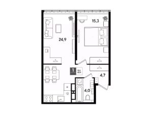В продаже 1-комнатная квартира от застройщика! Мкр. "DOGMA PARK" г. Краснодар, Литер 22 Срок сдачи: 4 кв. 2027, общей площадью 48.9 кв.м., на 16 этаже.