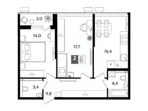 В продаже 2-комнатная квартира от застройщика! Мкр. "DOGMA PARK" г. Краснодар, Литер 8 Срок сдачи: 4 кв. 2026, общей площадью 67.7 кв.м., на 2 этаже.