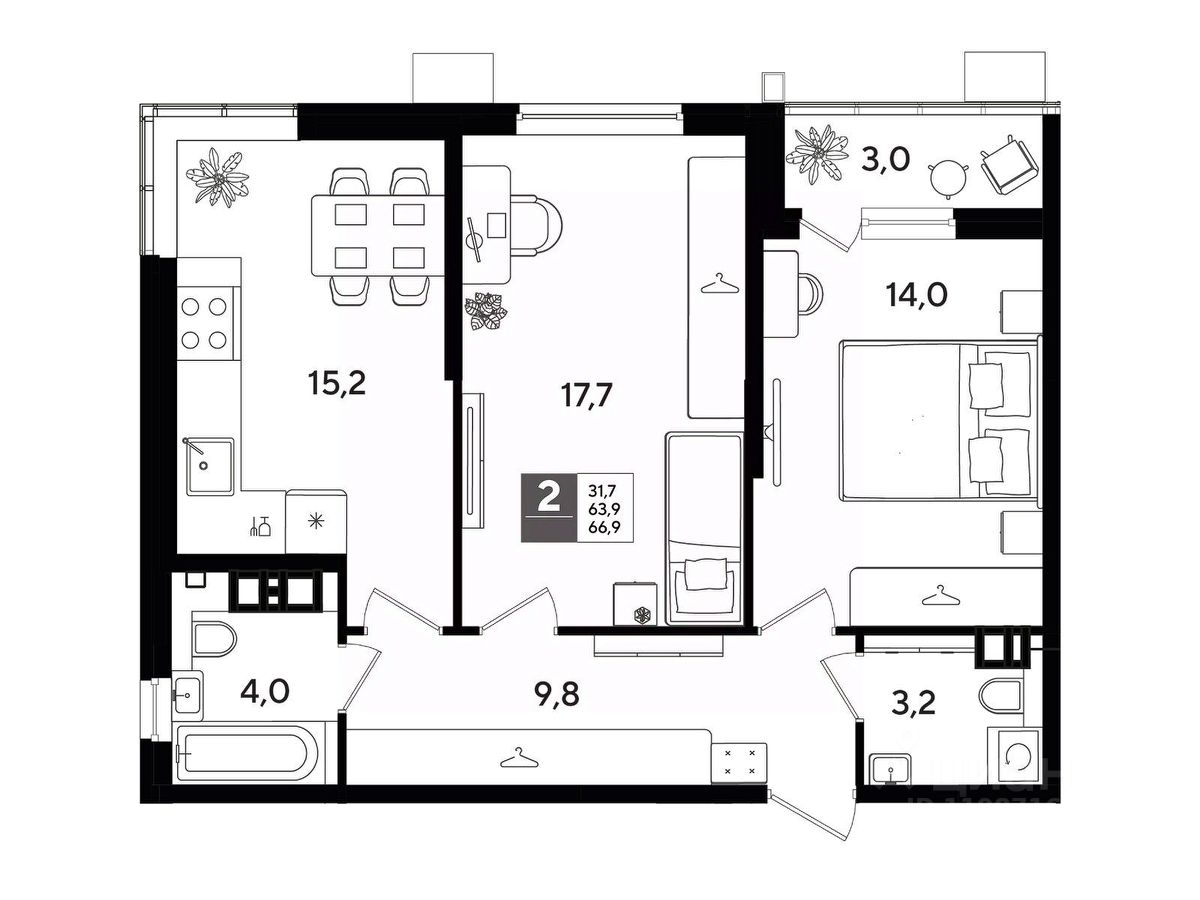 В продаже 2-комнатная квартира от застройщика! Мкр. "DOGMA PARK" г. Краснодар, Литер 8 Срок сдачи: 4 кв. 2026, общей площадью 66.9 кв.м., на 4 этаже.