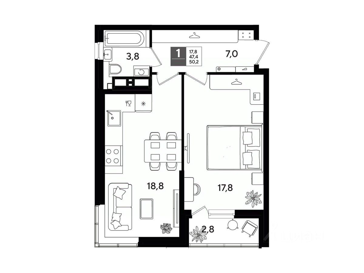 В продаже 1-комнатная квартира от застройщика! Мкр. "DOGMA PARK" г. Краснодар, Литер 8 Срок сдачи: 4 кв. 2026, общей площадью 50.2 кв.м., на 13 этаже.