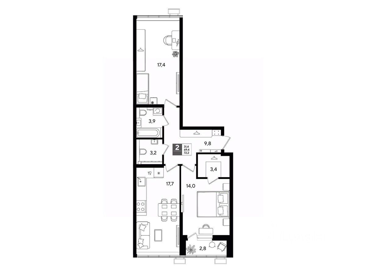 В продаже 2-комнатная квартира от застройщика! Мкр. "DOGMA PARK" г. Краснодар, Литер 8 Срок сдачи: 4 кв. 2026, общей площадью 72.2 кв.м., на 2 этаже.