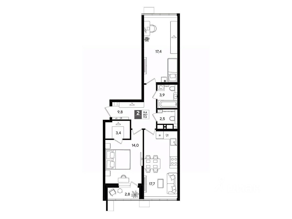 В продаже 2-комнатная квартира от застройщика! Мкр. "DOGMA PARK" г. Краснодар, Литер 8 Срок сдачи: 4 кв. 2026, общей площадью 71.5 кв.м., на 15 этаже.