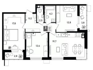 В продаже 3-комнатная квартира от застройщика! Мкр. "DOGMA PARK" г. Краснодар, Литер 8 Срок сдачи: 4 кв. 2026, общей площадью 85.3 кв.м., на 5 этаже.