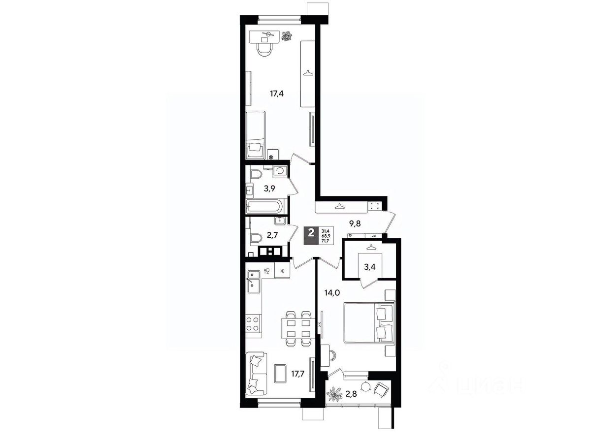 В продаже 2-комнатная квартира от застройщика! Мкр. "DOGMA PARK" г. Краснодар, Литер 8 Срок сдачи: 4 кв. 2026, общей площадью 71.7 кв.м., на 8 этаже.