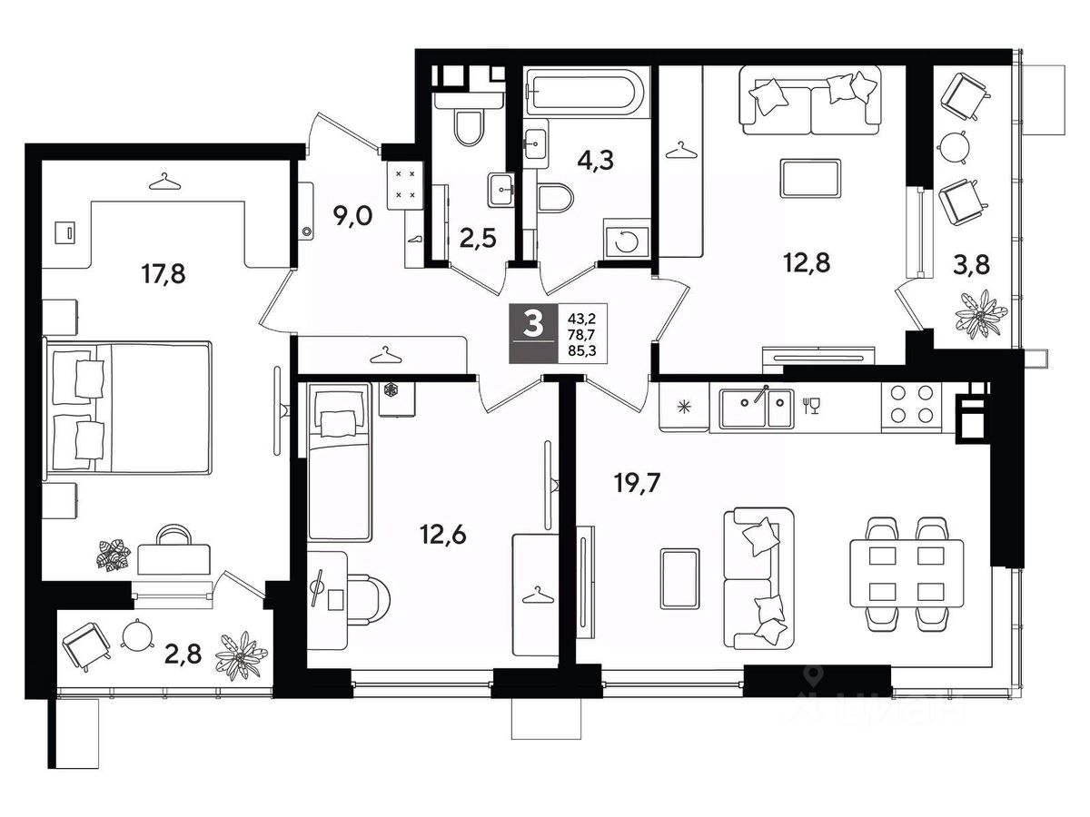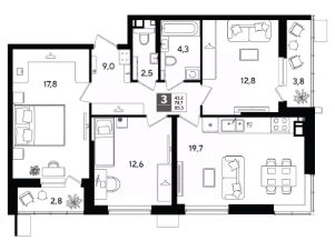 В продаже 3-комнатная квартира от застройщика! Мкр. "DOGMA PARK" г. Краснодар, Литер 8 Срок сдачи: 4 кв. 2026, общей площадью 85.3 кв.м., на 9 этаже.