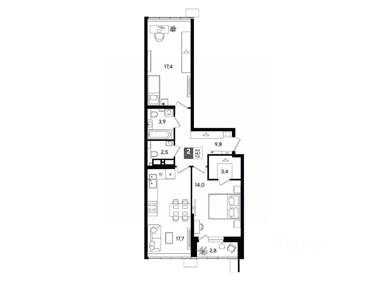 В продаже 2-комнатная квартира от застройщика! Мкр. "DOGMA PARK" г. Краснодар, Литер 8 Срок сдачи: 4 кв. 2026, общей площадью 71.5 кв.м., на 15 этаже.