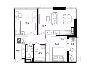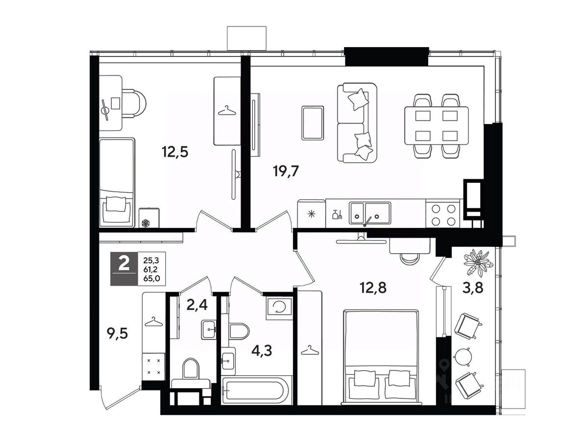 В продаже 2-комнатная квартира от застройщика! Мкр. "DOGMA PARK" г. Краснодар, Литер 8 Срок сдачи: 4 кв. 2026, общей площадью 65 кв.м., на 15 этаже.