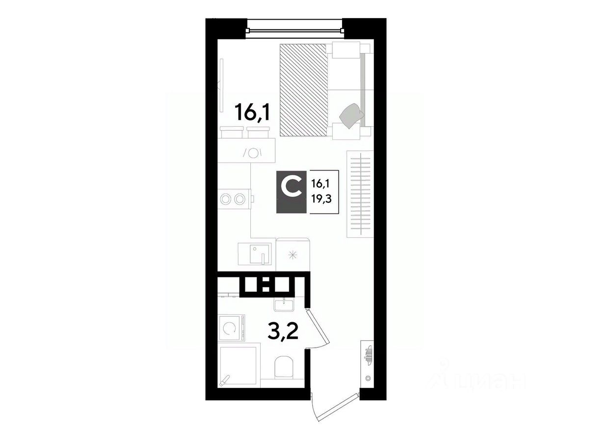 В продаже квартира-студия от застройщика! Мкр. "DOGMA PARK" г. Краснодар, Литер 32 Срок сдачи: 3 кв. 2027, общей площадью 19.3 кв.м., на 9 этаже.
