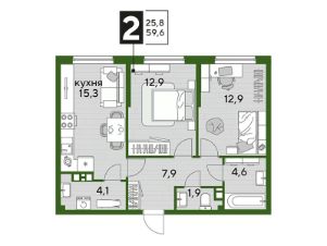 В продаже 2-комнатная квартира от застройщика! Мкр. "DOGMA PARK" г. Краснодар, Литер 18 Срок сдачи: 4 кв. 2027, общей площадью 59.6 кв.м., на 8 этаже.