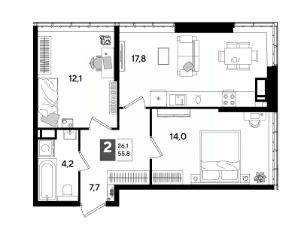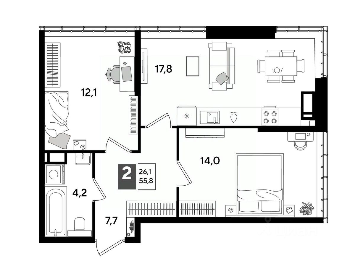 В продаже 2-комнатная квартира от застройщика! Мкр. "DOGMA PARK" г. Краснодар, Литер 18 Срок сдачи: 4 кв. 2027, общей площадью 55.8 кв.м., на 16 этаже.