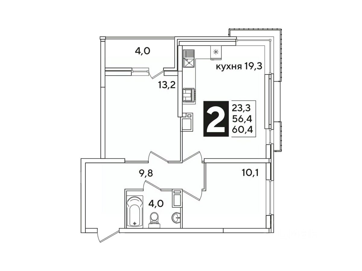 Продается 2-комн. квартира, 60,8 м²
