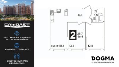 DOGMA — девелопер федерального уровня. По объему текущего строительства входит в ТОП-3 застройщиков России, занимает первое место в Краснодарском крае. С 2011 года компания построила более 1,2 млн м², сдала точно в срок больше 60 домов.