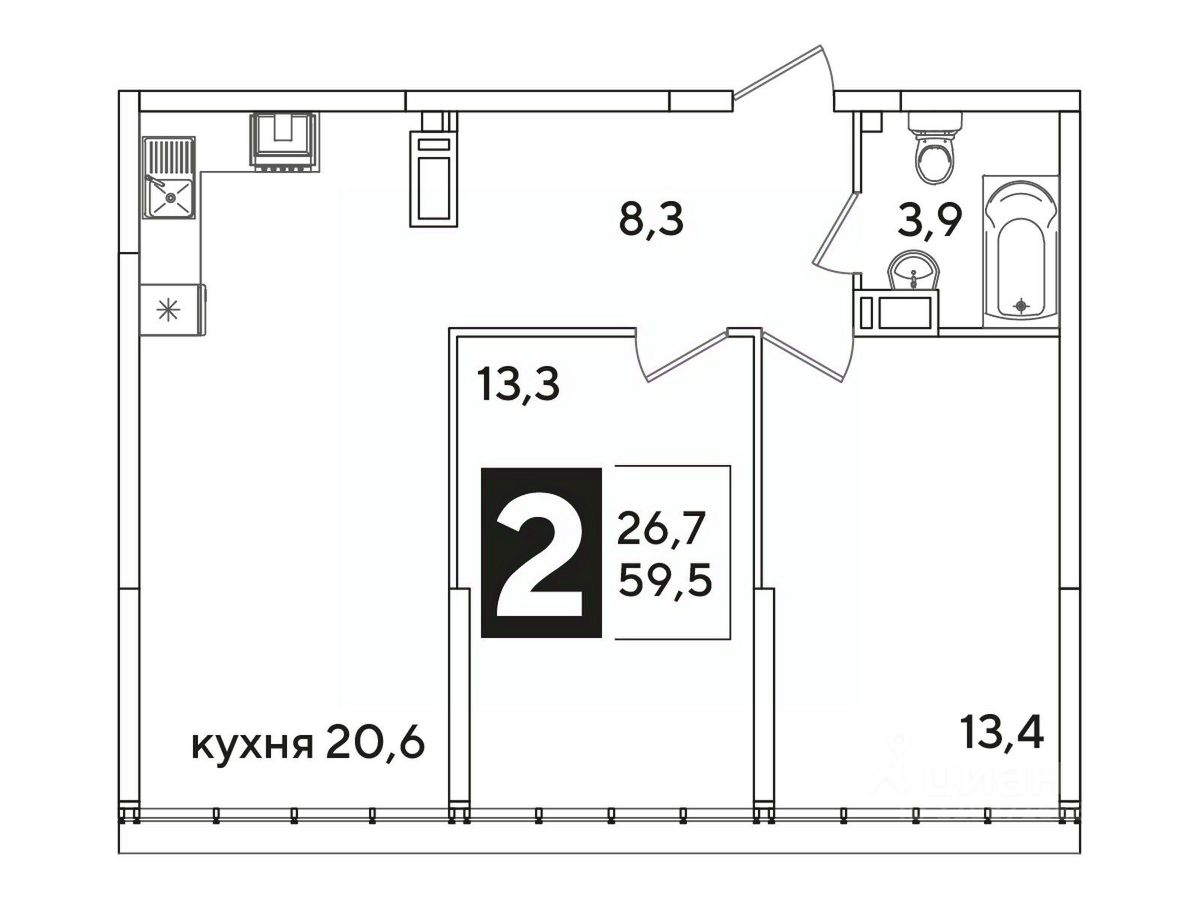 Общая площадь59,5 м²