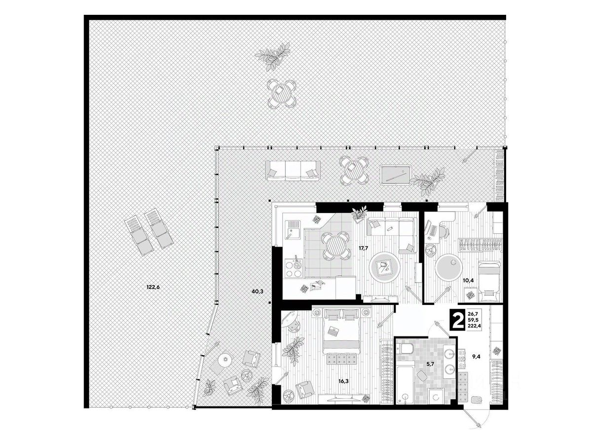 В продаже 2-комнатная квартира от застройщика! Мкр. "Самолет" 5 очередь, г. Краснодар, Литер 29 Срок сдачи: 4 кв. 2024, общей площадью 223.7 кв.м., на 2 этаже.
