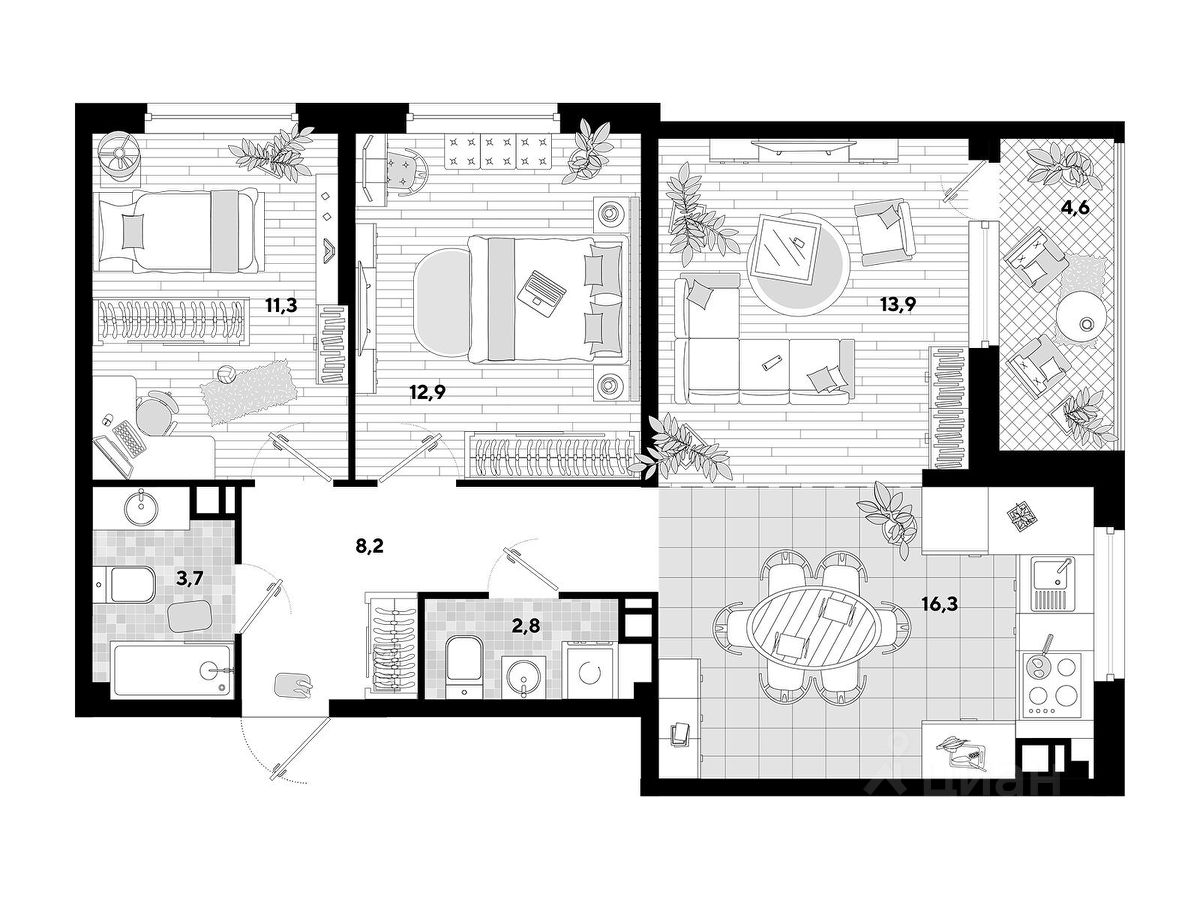 В продаже 3-комнатная квартира от застройщика! Мкр. "Самолет" 3 очередь, г. Краснодар, Литер 13 Срок сдачи: 4 кв. 2023, общей площадью 73.7 кв.м., на 4 этаже.