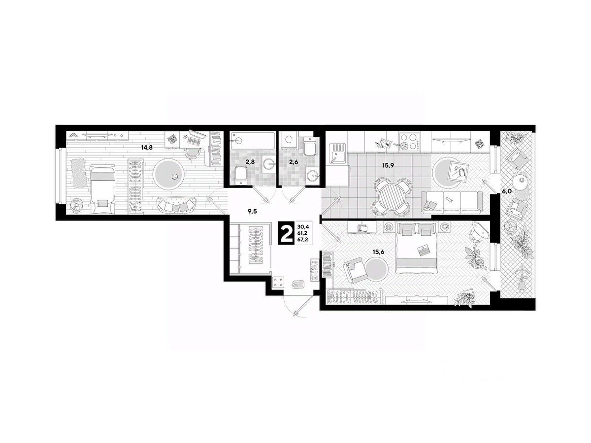 В продаже 2-комнатная квартира от застройщика! Мкр. "Самолет" 4 очередь, г. Краснодар, Литер 24 Срок сдачи: 4 кв. 2023, общей площадью 67.2 кв.м., на 2 этаже.