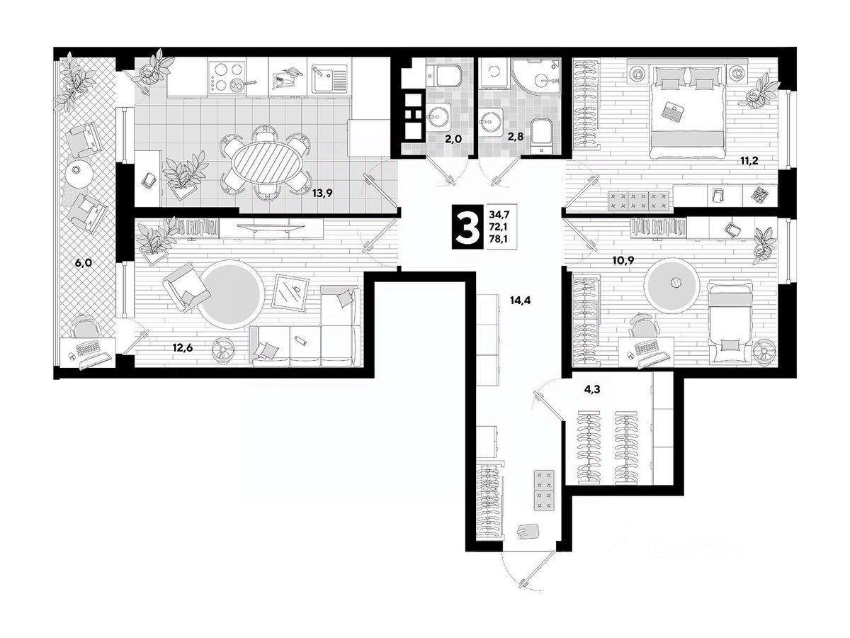 В продаже 3-комнатная квартира от застройщика! Мкр. "Самолет" 4 очередь, г. Краснодар, Литер 24 Срок сдачи: 4 кв. 2023, общей площадью 78.1 кв.м., на 3 этаже.