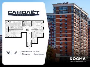 В продаже 3-комнатная квартира от застройщика! Мкр. "Самолет" 4 очередь, г. Краснодар, Литер 24 Срок сдачи: 4 кв. 2023, общей площадью 78.1 кв.м., на 4 этаже.