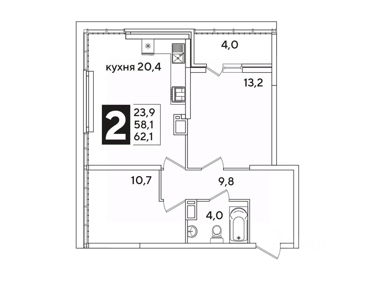 Общая площадь62,1 м²