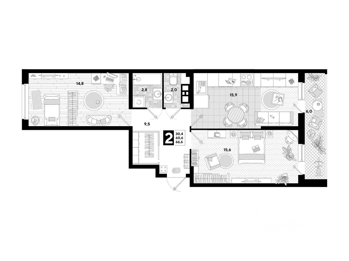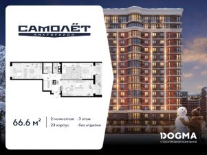 В продаже 2-комнатная квартира от застройщика! Мкр. "Самолет" 4 очередь, г. Краснодар, Литер 23 Срок сдачи: 4 кв. 2023, общей площадью 66.6 кв.м., на 3 этаже.
