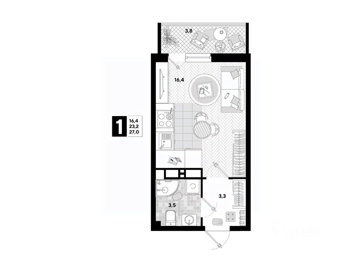 В продаже квартира-студия от застройщика! Мкр. "Самолет" 4 очередь, г. Краснодар, Литер 23 Срок сдачи: 4 кв. 2023, общей площадью 27 кв.м., на 14 этаже.