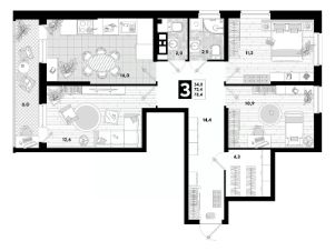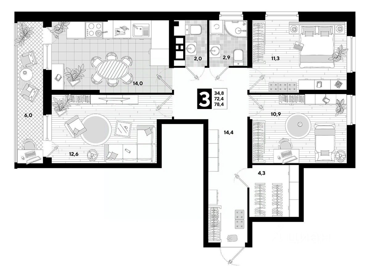 В продаже 3-комнатная квартира от застройщика! Мкр. "Самолет" 5 очередь, г. Краснодар, Литер 28 Срок сдачи: 4 кв. 2024, общей площадью 78.4 кв.м., на 4 этаже.