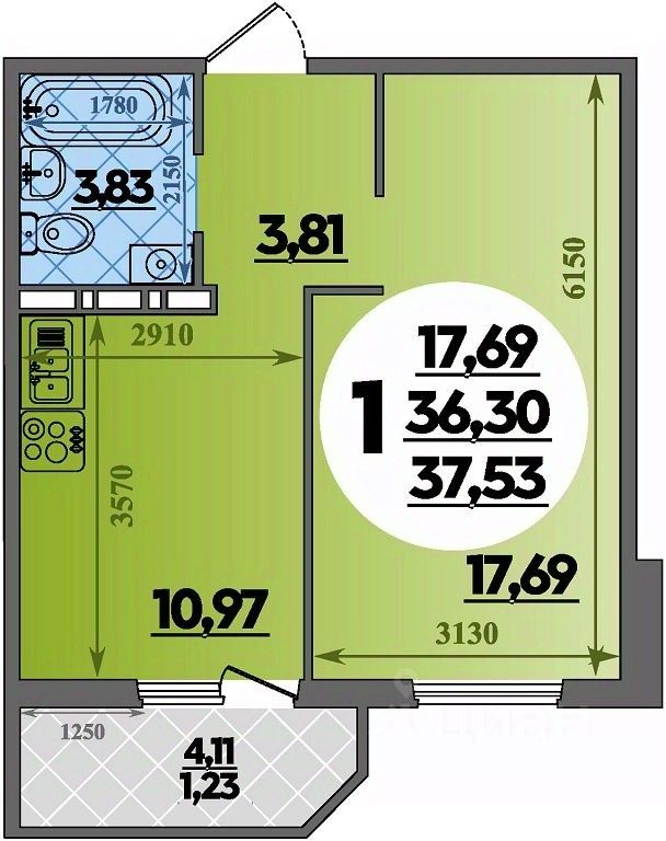 Продаётся 1-комнатная квартира в строящемся доме (Литер 2), срок сдачи: III-кв. 2027, общей площадью 37.53 кв.м., на 9 этаже.