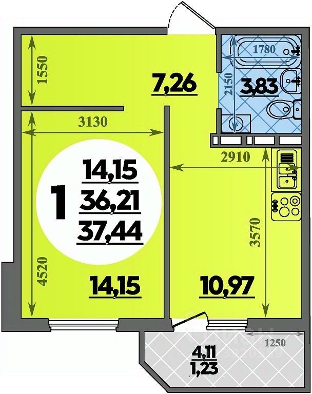 Продаётся 1-комнатная квартира в строящемся доме (Литер 2), срок сдачи: III-кв. 2027, общей площадью 37.44 кв.м., на 9 этаже.