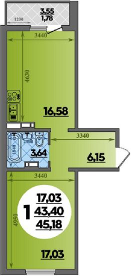 Продаётся 1-комнатная квартира в строящемся доме (Литер 2), срок сдачи: III-кв. 2027, общей площадью 45.18 кв.м., на 7 этаже.