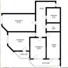 Квартира общей площадью 78,4 кв.м современной планировки: прихожая, изолированная комната, кухня-столовая 11 кв.м с выходом на застекленную лоджию, просторный совмещенный санузел.