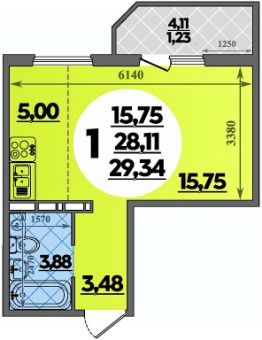 Продаётся студия в строящемся доме (Литер 2), срок сдачи: III-кв. 2027, общей площадью 29.34 кв.м., на 5 этаже.