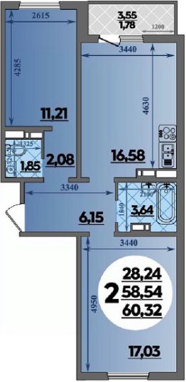 Продаётся 2-комнатная квартира в строящемся доме (Литер 2), срок сдачи: III-кв. 2027, общей площадью 60.32 кв.м., на 1 этаже.