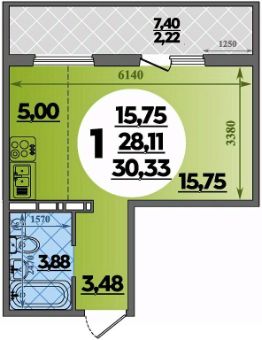 Продаётся студия в строящемся доме (Литер 2), срок сдачи: III-кв. 2027, общей площадью 30.33 кв.м., на 1 этаже.