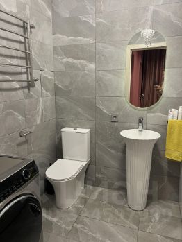 Квартира радует дизайнерским ремонтом, который продуман до мелочей. В интерьере использованы современные материалы и стильные решения. Просторная кухня оснащена всем необходимым для комфортной готовки. Установлен пятиступенчатый фильтр для очистки питьевой воды, посудомоечная машина на 45.