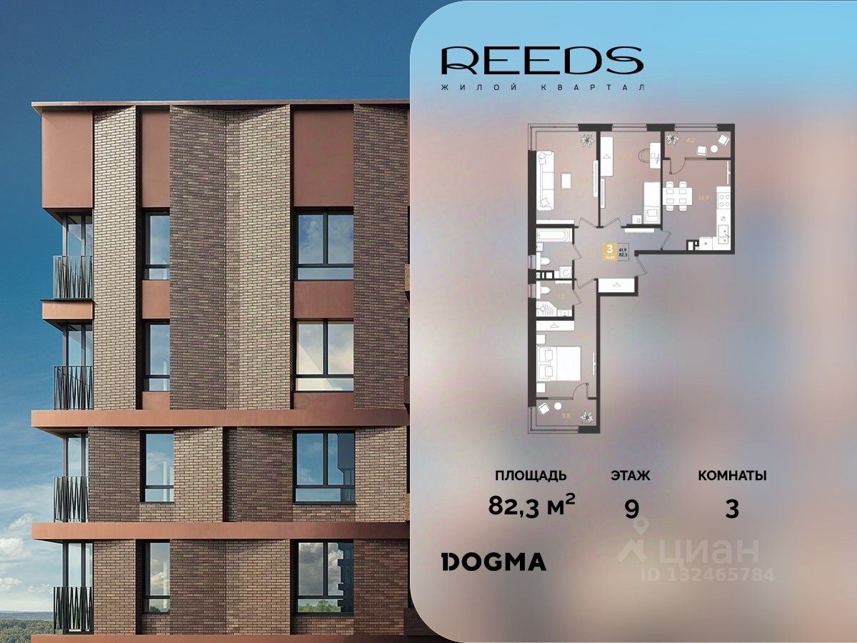 Срок сдачи: (4 кв. 2028, общей площадью 82.3 кв.м., на 9 этаже.)