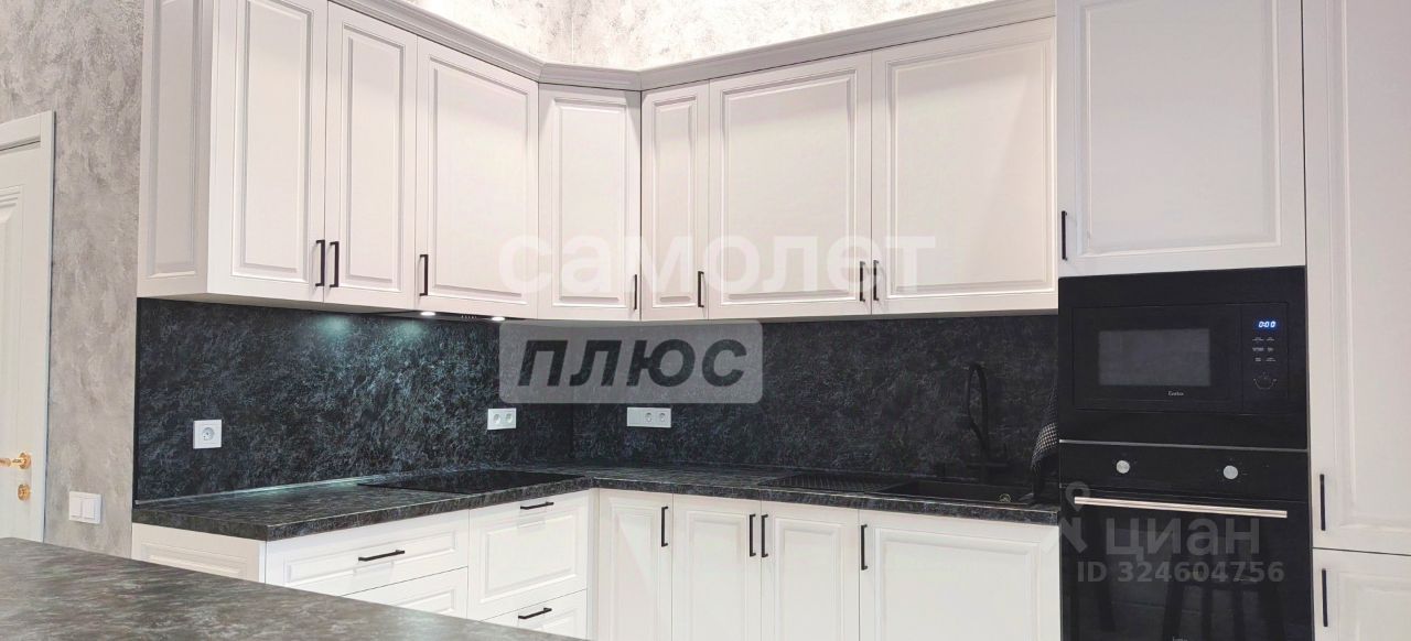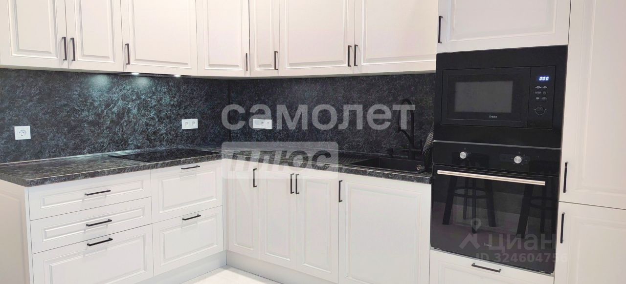 — Ремонт: в квартире выполнен современный ремонт из качественных материалов. Установлено дизайнерское освещение в кухне. Кухня полностью меблирована, большой диван, кухонный гарнитур, плита, духовой шкаф, вытяжка, стиральная машина. Ванная комната оснащена новой сантехникой. Есть гардеробная комната.