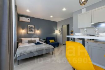 Студия отличается современным и стильным ремонтом, выполненным из высококачественных материалов. Светлые тона в отделке создают ощущение простора и легкости, а функциональная планировка позволяет максимально эффективно использовать доступное пространство. Здесь есть все необходимое для комфортного проживания: современная кухня, удобная спальная зона и санузел, оборудованный качественной сантехникой.