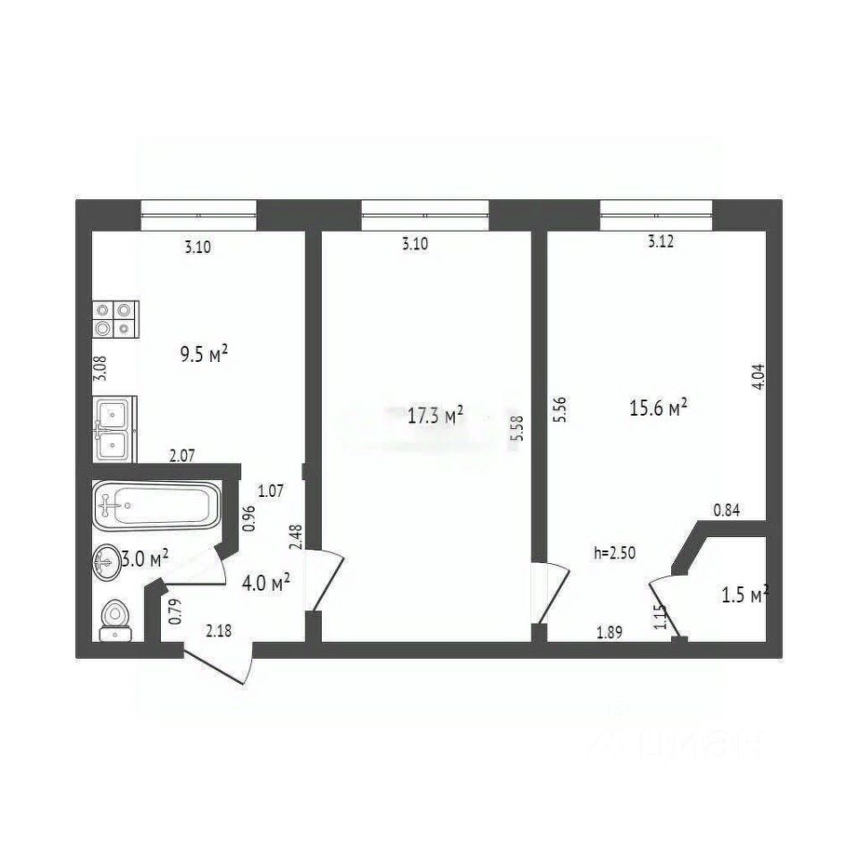 Квартира включает в себя просторную кухню площадью 9.5 кв.м., где вы сможете готовить вкусные блюда для своей семьи, а также две светлые комнаты размером 15.6 и 17.3 кв.м., которые легко трансформируются под ваши нужды будь то уютная спальня или стильный кабинет.